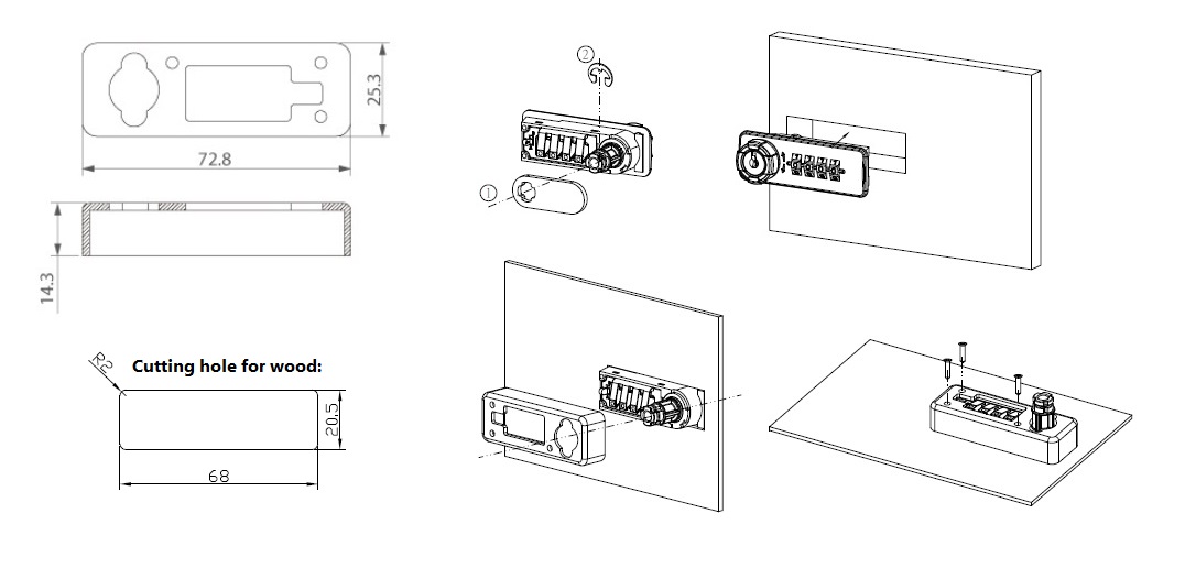 Back Plate, Black Plastic, F/Lock M224, F/1-12mm Panels, W/ 3 Screws, Size: 73x25x14mm, ABS Material, Cutting Hole: 68 x 20,5mm