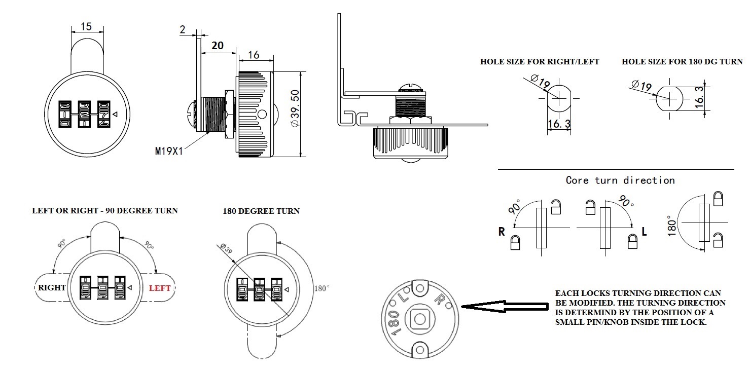 Combi. Cam Lock "Jacks", 90DG, LH, ø19x20mm, BLK, Cam A04