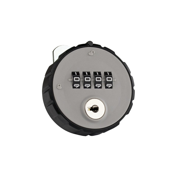 Combi. Cam Lock M215,4-Digit,RH,ø56,6x30,35mm,Black/Grey, 90 DG, Ø19X30mm Cylinder, Straight Cam,C/E:40mm, W/Hex Nut,Pre- Coded 0000, Changing Code By Pressing Metal Pin On Side of Housing into the Housing in Open Position, Master Code A201