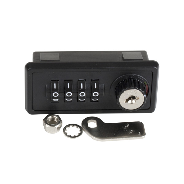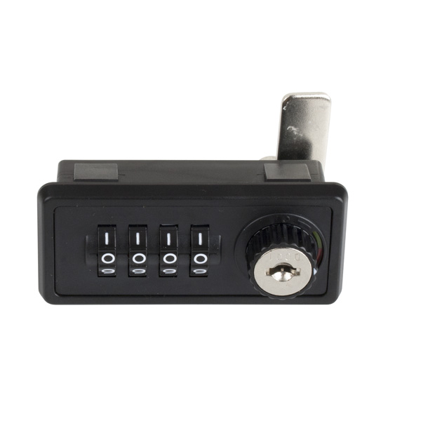 Combi. Cam Lock M237,4-Digit, LH, 180DG, "Public or Private" Setting By Switch Button, w/Master Key & Decoding Function. Black ABS Housing, Zamak Cylinder, W/Hex Nut, Washer & Cam Plate No.3, Master Key System D001