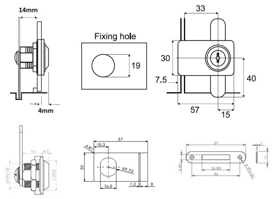 Glass Door Lock 916, CPL, 180DG, Str. Cam A04, CK:SISO, W/ Striker & Front Plate