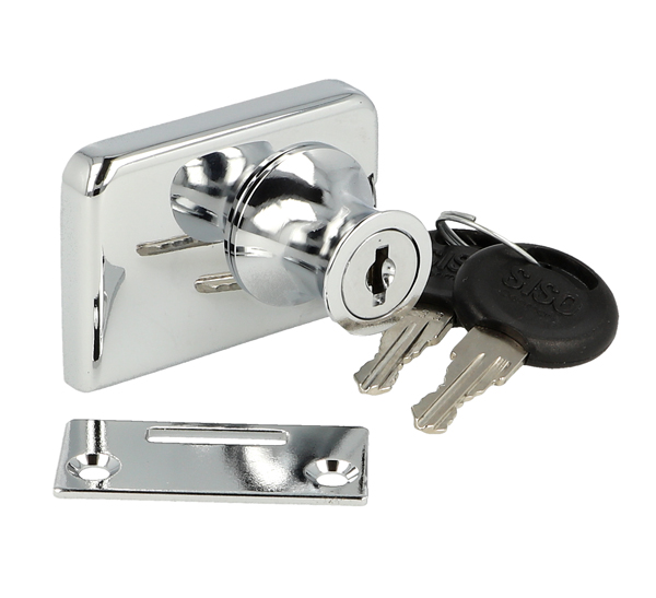 Glass Door Lock "Vetro-D", ø19mm, Chrome Pl, No Bore,CK SISO