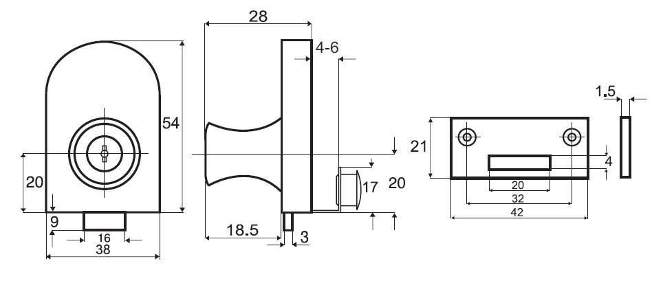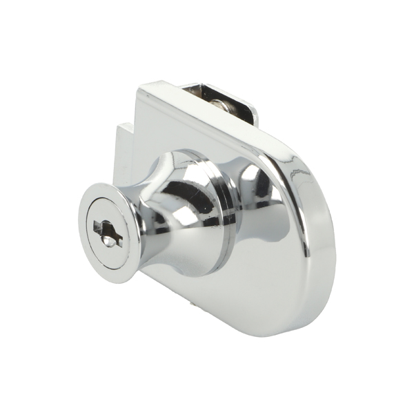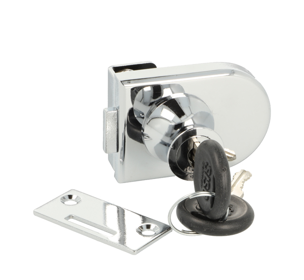 Glass Door Lock 64081, CPL, Curved Cylinder,CK SISO, No Bore