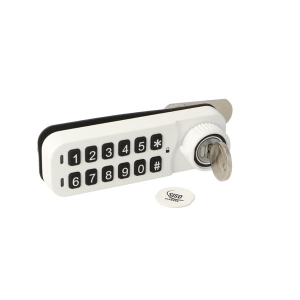 Elec. Combi. Cam Lock, "VIC", ø19x20mm,Horizontal, LH, White All Zamak, Public/Private, W/Master Key System #07, 3 Level Management, W/Auto-timer Function, IP65 Rating, Powered by CR2450 Button Battery, 30.000 Cycles, CE, REACH and Rohs Certified