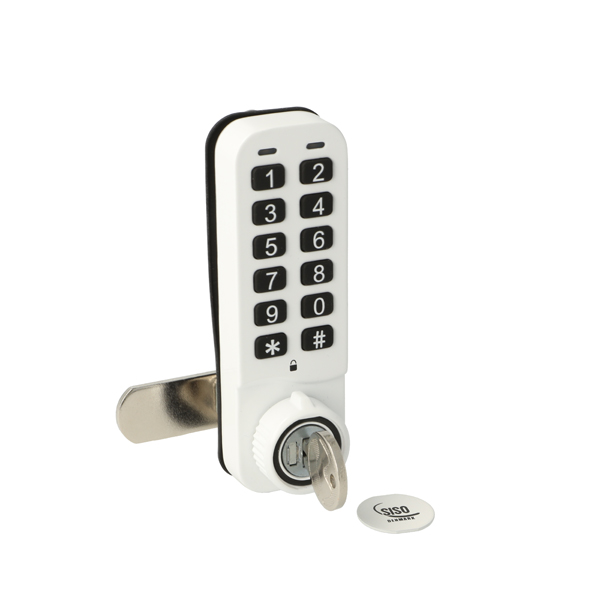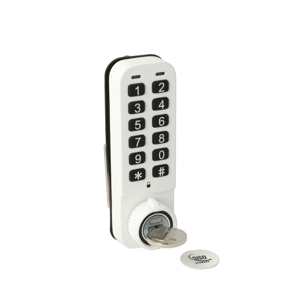 Elec. Combi. Cam Lock, "VIC", ø19x20mm, Vertical, Uni, White All Zamak, Public/Private, W/Master Key System #07, 3 Level Management, W/Auto-timer Function, IP65 Rating, Powered by CR2450 Button Battery, 30.000 Cycles, CE, REACH and Rohs Certified Universal - No right hand or left hand