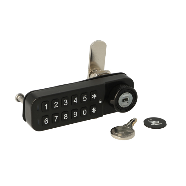 Elec. Combi. Cam Lock, "VIC", ø19x30mm,Horizontal, LH, Black All Zamak, Public/Private, W/Master Key System #07, 3 Level Management, W/Auto-timer Function, IP65 Rating, Powered by CR2450 Button Battery, 30.000 Cycles, CE, REACH and Rohs Certified