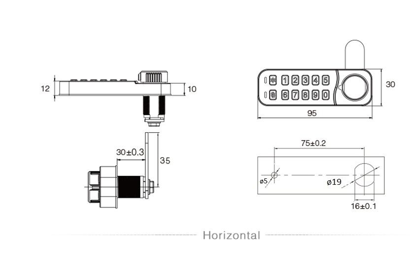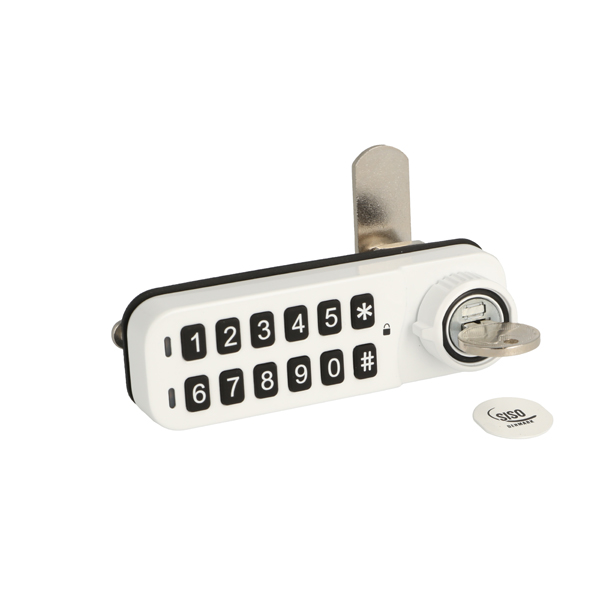 Elec. Combi. Cam Lock, "VIC", ø19x30mm,Horizontal, LH, White All Zamak, Public/Private, W/Master Key System #07, 3 Level Management, W/Auto-timer Function, IP65 Rating, Powered by CR2450 Button Battery, 30.000 Cycles, CE, REACH and Rohs Certified