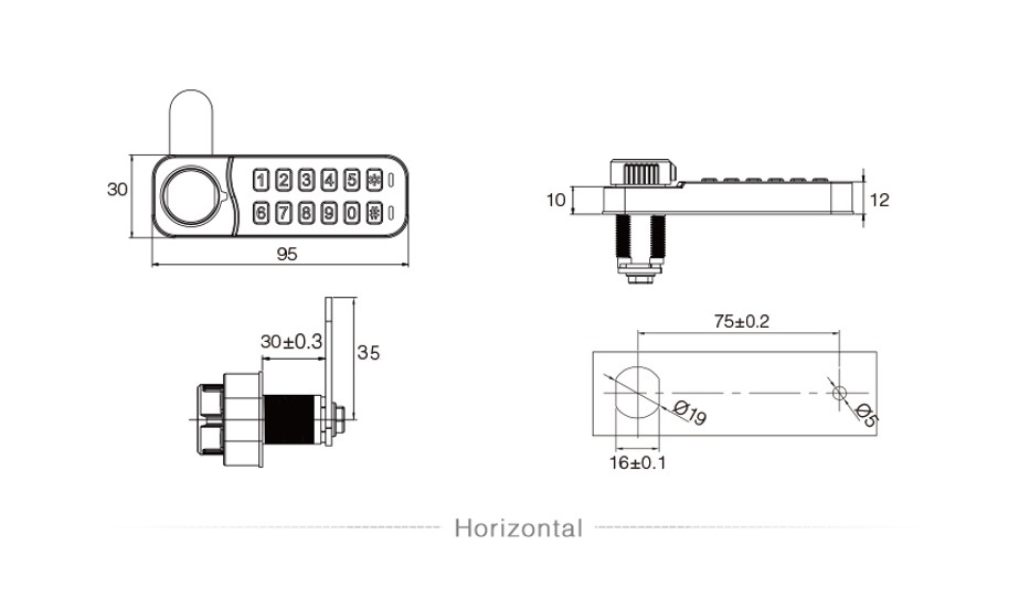 Elec. Combi. Cam Lock, "VIC", ø19x30mm,Horizontal, RH, Black All Zamak, Public/Private, W/Master Key System #07, 3 Level Management, W/Auto-timer Function, IP65 Rating, Powered by CR2450 Button Battery, 30.000 Cycles, CE, REACH and Rohs Certified