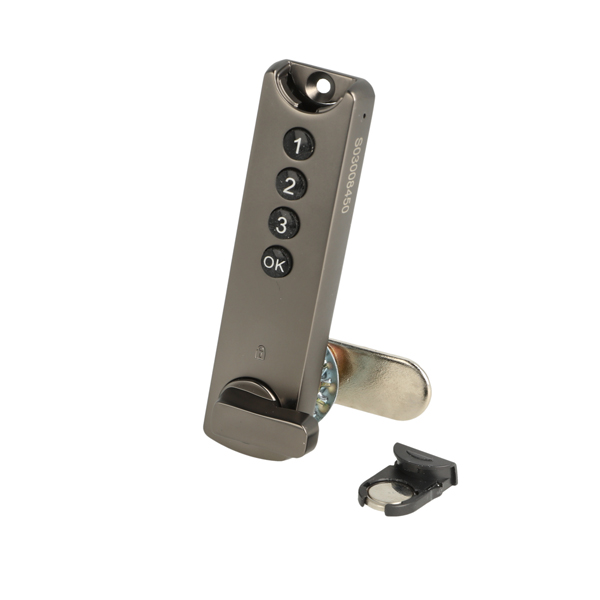 Elec. Combination Cam Lock, "Dave", Private, Gun Metal Grey, 93x25x9,1mm, CE: 32mm(Battery CR1220 Not Included)-Included: 1Pcs. Striking Plate, 3 Pcs. Cam Plate, 1Pcs. Needle, 2Pcs. Washers, 2Pcs Nuts, 7Pcs Screws, 1Pcs Tube ø6x50mm. Download User Guide From www.siso.dk