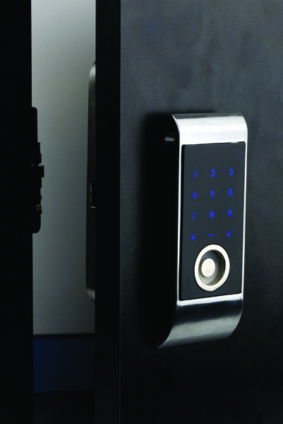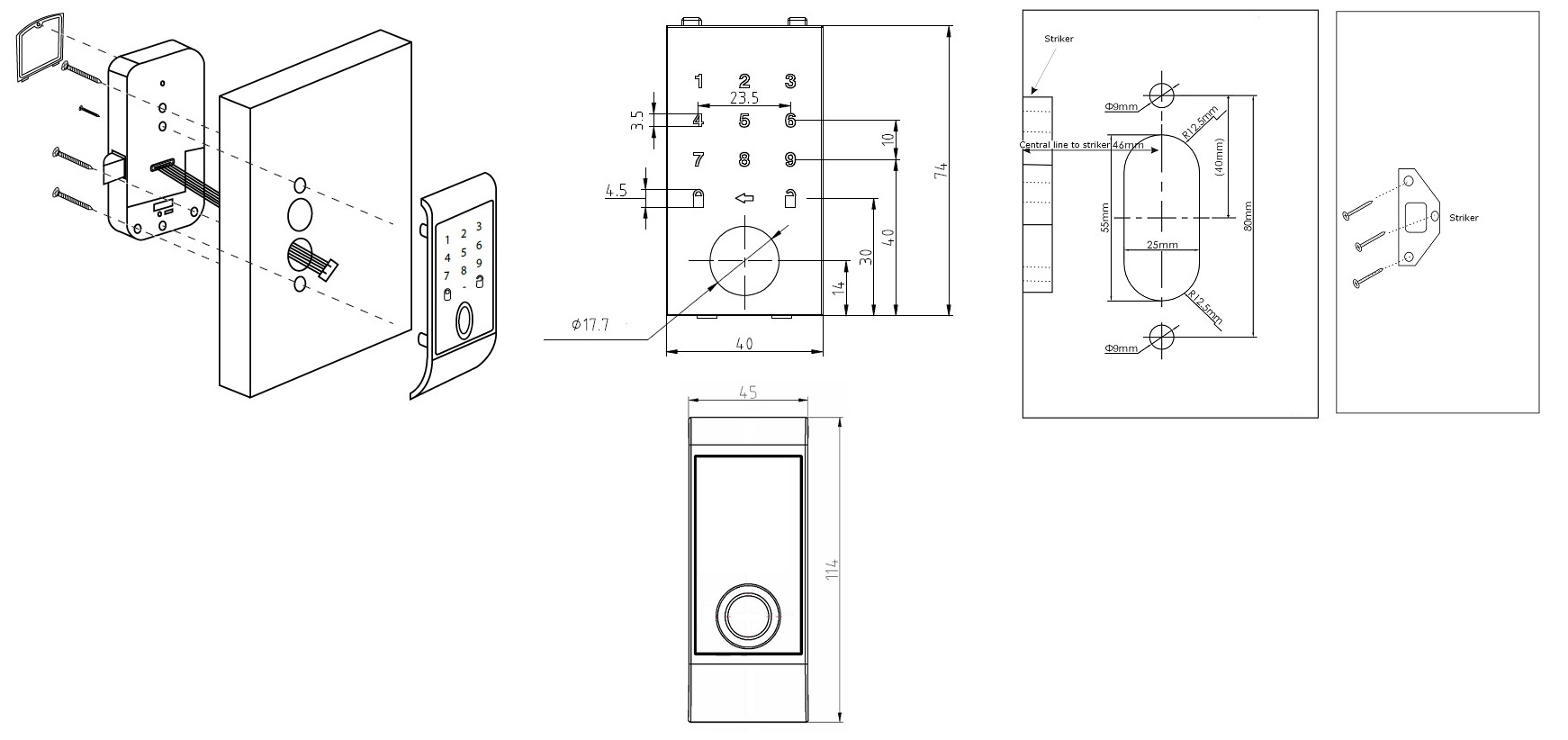 Electronic Slam Lock, W/LED Keypad, SS-Look, W/PTO Striker, Incl. Black Distance Spacer Frame to be Used if Spring Function is Wanted, Public Type W/Temporary User Code, Operated by 1-9 Digit Code or by Wristband with Chip, W/Master function Operated by Mother Wristband Keypad made of Zamak, Lock Body made of Steel & Striker made of Black Plastic,Wristebands to be Ordered Seperately