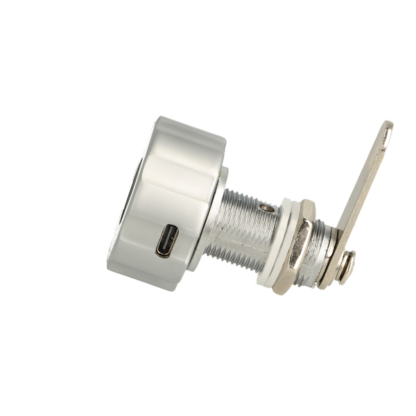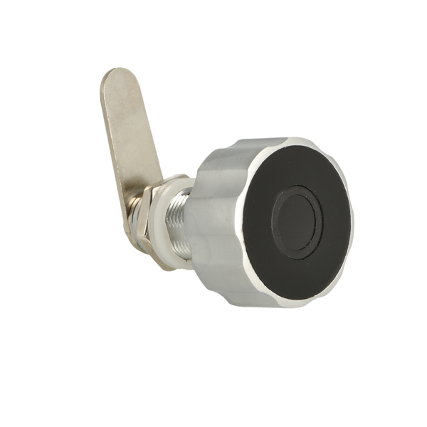 Elec. Finger Print Cam Lock "Fred",ø19x30mm,ø40mm,Zamak Knob Silver/Black,W/USB C Charging Cable,Straight Cam ce: 39,5mm, 90 Degree Turn, W/Built-in Lithium Battery, Operated by TUYA App, Reset E-Key may be bought Separately