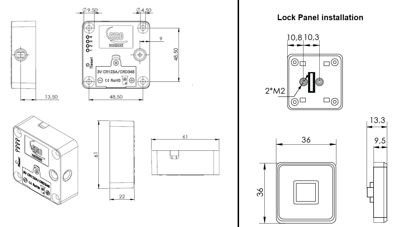 Mifare1 Lock W/Fingerprint "Mini", 61x61x22mm, Black ABS,No Accessories, No Striker, No Batteries,1xCR123A Lithium Office to Be Used,Can be Programed to Public, Private or Office Mode, W/Non Locking & Low Battery Alarm