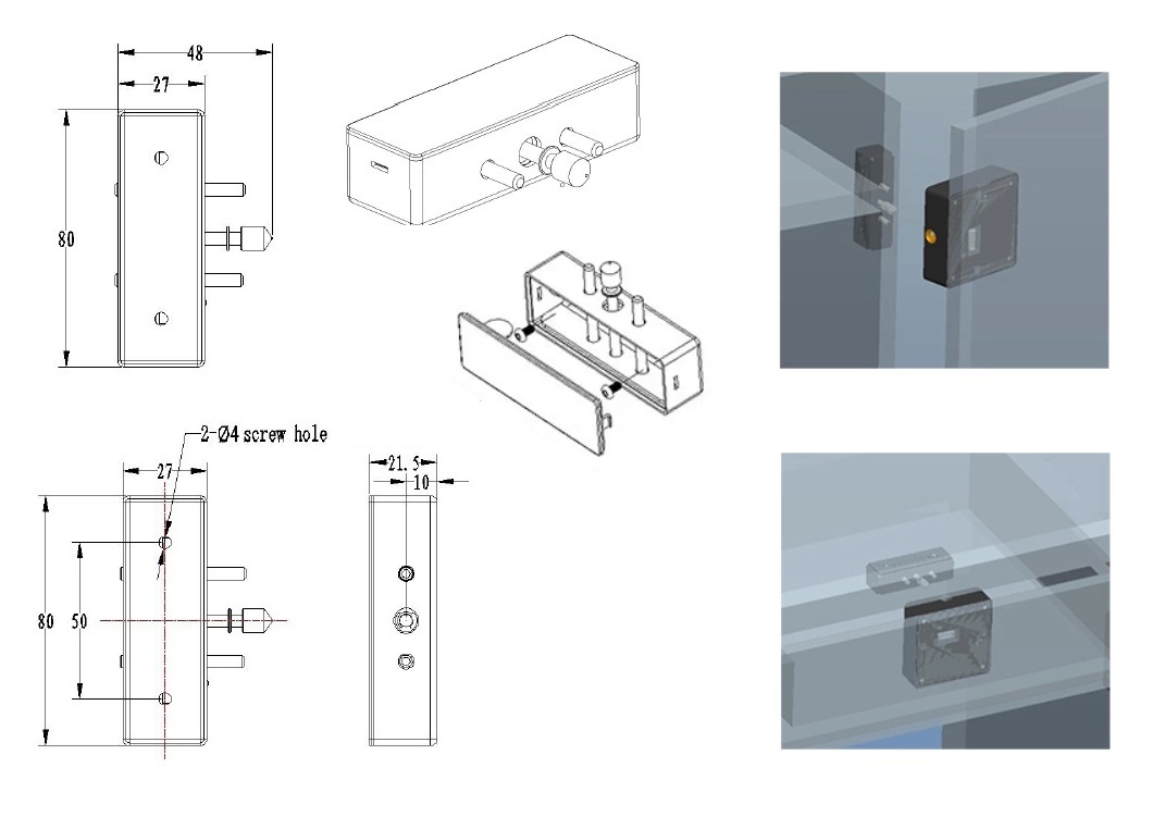 Striker, PTO, F/Mifare1 Lock, F/Cabinet Doors, 80x27x21,5mm, Steel/Black ABS