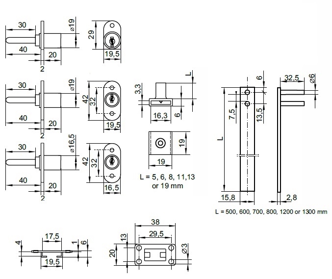 Central Lock 1018/600mm, ø16,5x20mm,40mm Tail, NPL,CK SISO, Complete W/1x600mm Locking Bar,2xMetal Bar Guides & 3x13mm Adjustable Pegs