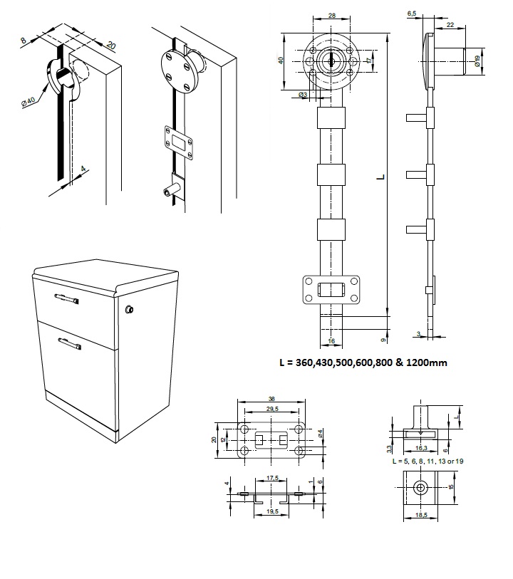 Central Lock 851N/500mm, ø19x22mm, NPL, CK SISO, KA:D20, 13 mm Pegs