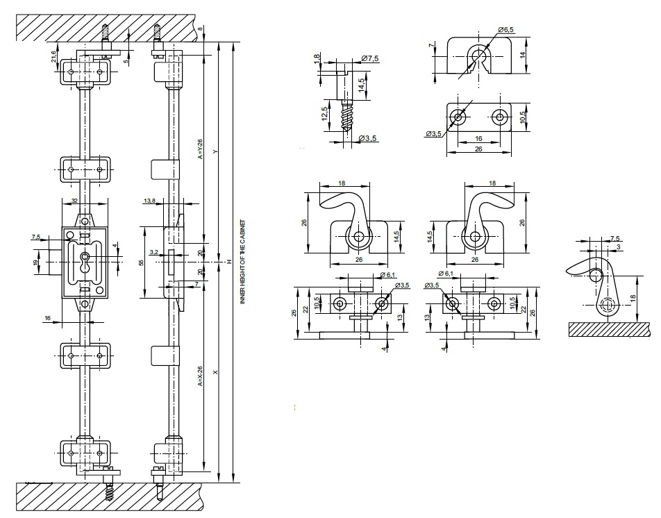 Rotary Bar Lock 155M, Screw-On, 3-Way, Right, BRZ, No Bar or Key but All Other Accessories, Only Right Hand Application, Simple Key Type Euro Bit