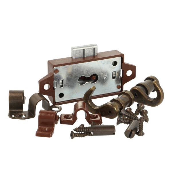 Rotary Bar Lock 155P Brown/NPL, Screw-On, L+R,No Bar or Key, W/Accessories, Simple Key Type, Plastic Body,Zamak Cylinder