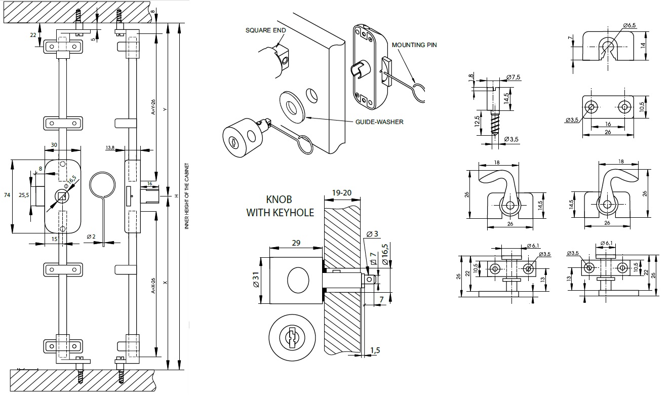 Rotary Bar Lock 924 W/Knob, RH, NPL, CK SISO, KA D20,No Bars , W/Accessories