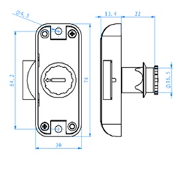 Rotary Bar Lock MIC-922, ø16,5x22mm, RH, NPL, Body Only, F/ System J#11+J#12, W/Black Plastic Plug, No Bar, No Access.