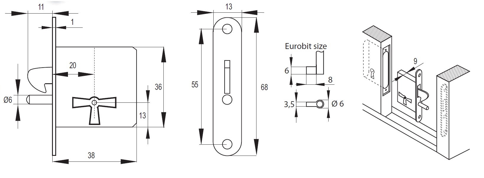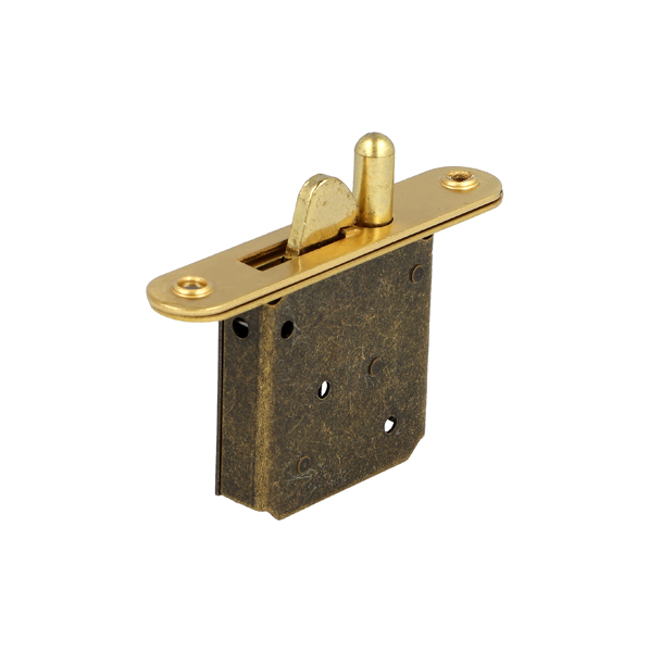 Mortise Chest Lock W/Hook & Bolt, Brass Rounded Front Plate, Simple Closing, No Key - to be bought seperately