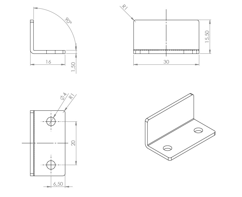 L-Shaped Striking Pl. 30x16x15,5mm, NPL Steel - 1,5mm