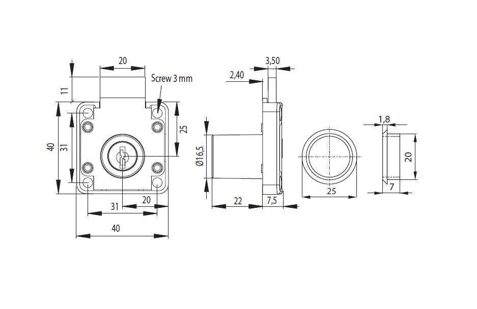 Rim Lock 850, ø16,5x22mm, Drawer, NPL, HCK SISO