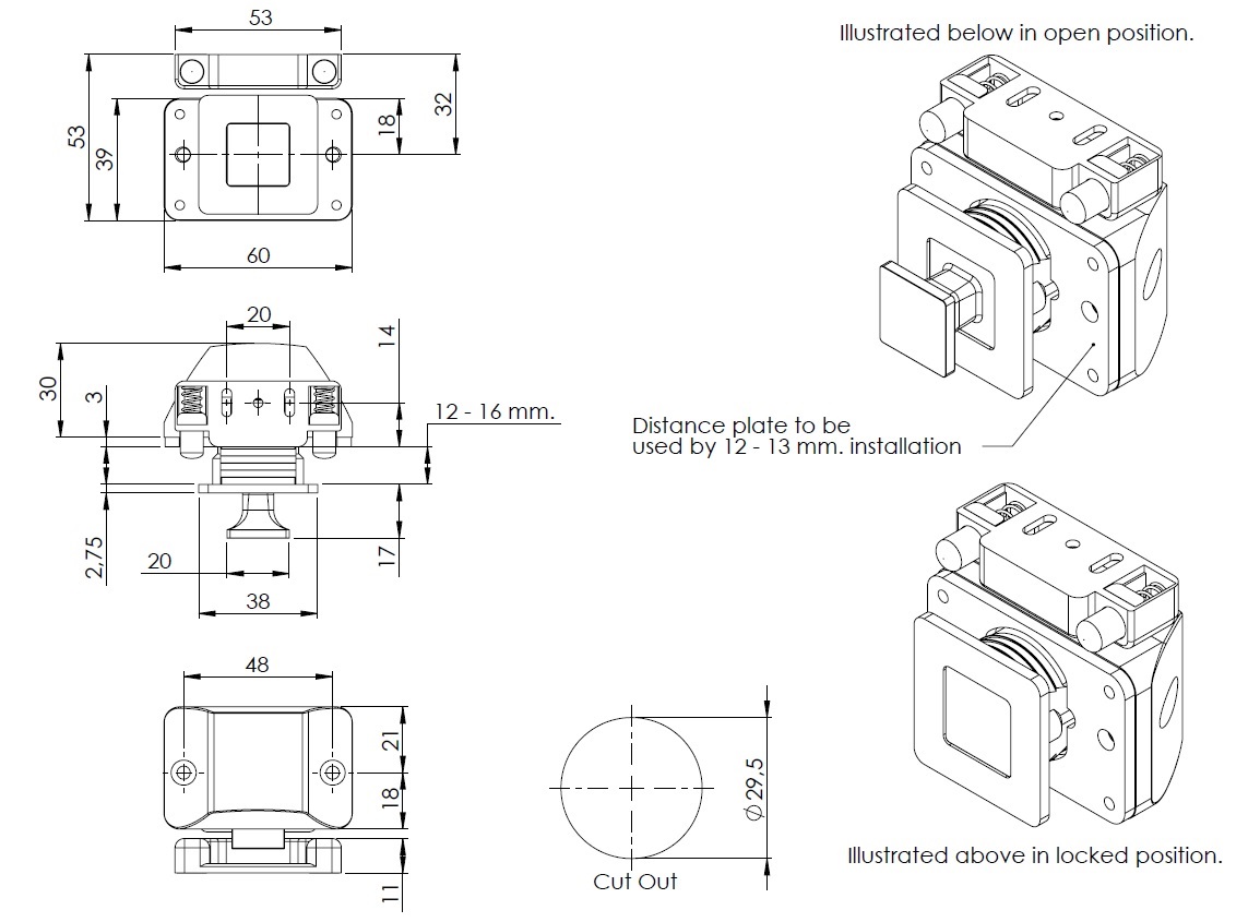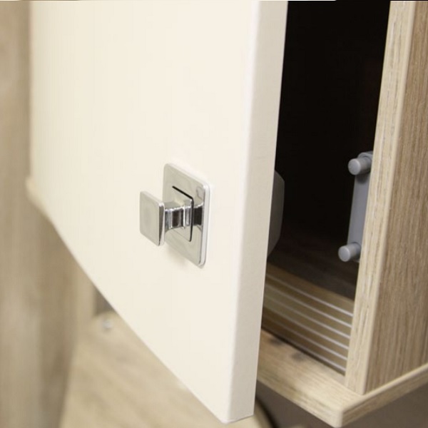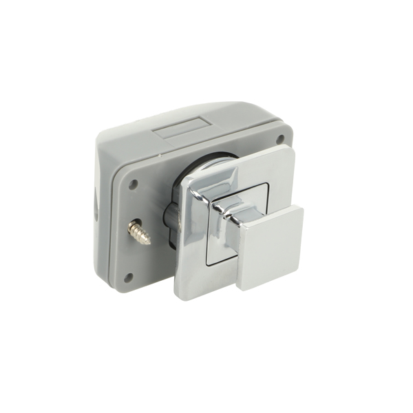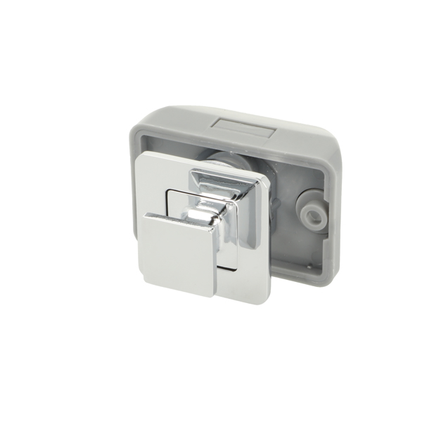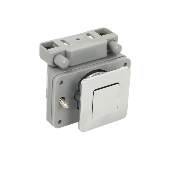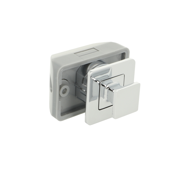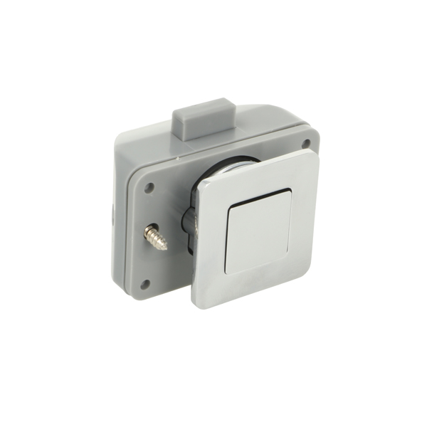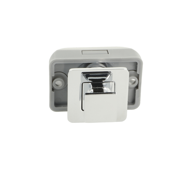 Push Lock "RV", F/12-16 mm, CPL, Square Zamak Knob & Grey ABS Housing, Incl. Grey ABS Striker W/Spring Tension & 3mm Panel Reduction Spacer in Grey ABS