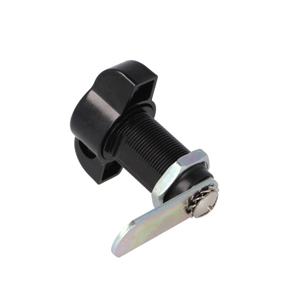 Padlockable Cam Lock #300L, 90DG, ø19x32mm, Black, Cam A04, Straight C/E: 40 mm, NO Anti Rotating Plate, F/Shackle Size Ø5 - to 7 mm - min.16mm Width
