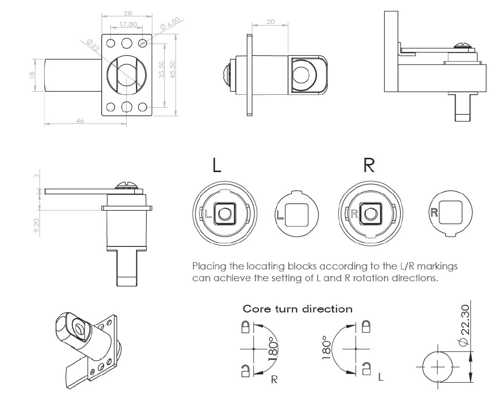 Padlockable Cam Lock "Roto", 180DG, L/R, W/Back Plate,Chrome Plated, Straight Cam Plate C/E: 45mm, Pre-installed as Right Hand, Can be Changed to Left Hand, Screw Fixing. 8mm Shackle Hole