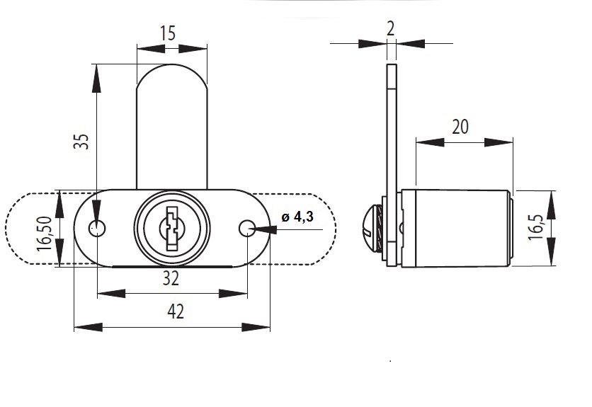 Cam Lock MIC-5250, ø16.5x20mm, 180DG, NPL, HCK SISO Cam No.A03, MIC System J#11