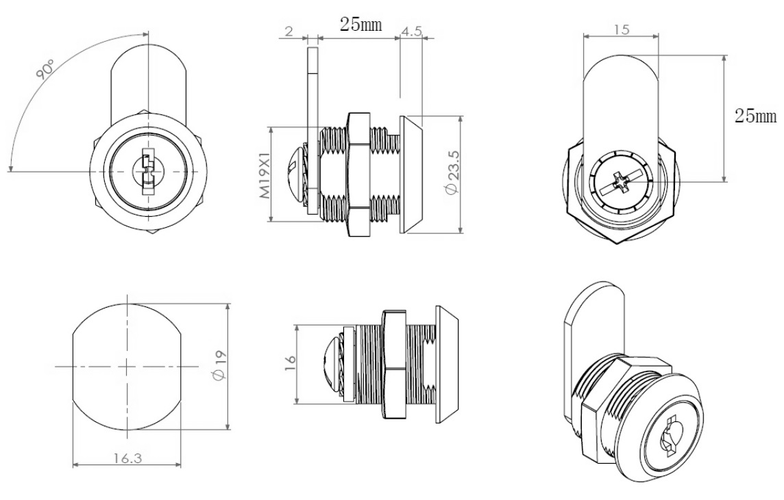 Cam Lock MIC1925S, 90DG, Cam No. A01,Black,Snake MK SISO,#01 NOT with Full Thread