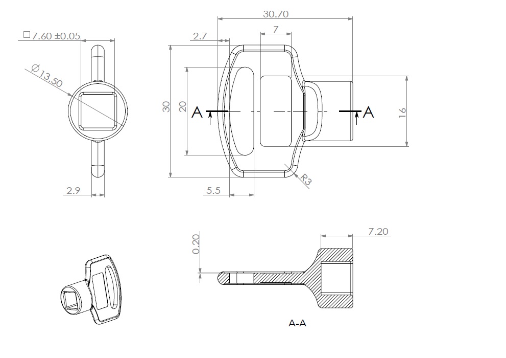 Square Bit Key, Zamak, F/Lock 14.04.481-0