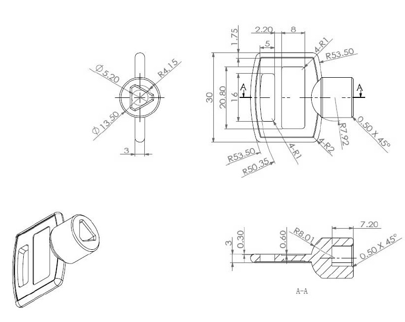 Triangular Bit Key, Zamak, NPL, F/Lock 14.04.483-0