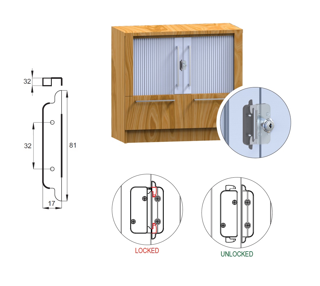 Double Door Plastic Striker, Black, F/Lock "Verti" (Lock to Ordered Seperately. Item 14.01.406 & 409-0)