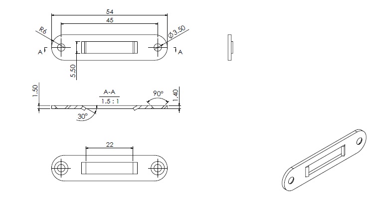 Striker F/Roll Blind Lock 2159, Oval Shaped, Nickel Plated
