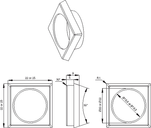 Rosette, ø16,5mm, W/Square Front, Zamak, Alu, Collar H 4mm, Inset 5mm