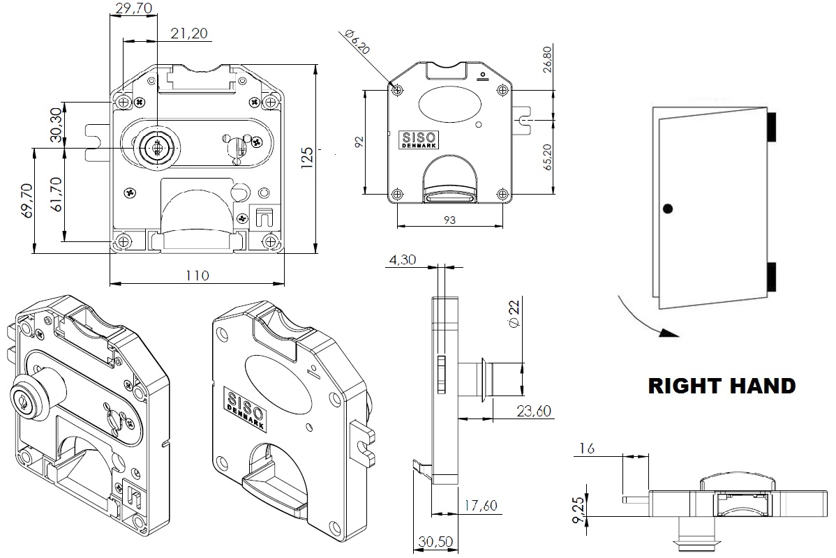 Coin Lock F/2 Leva, W/MIC System #01,CPL,RH,Snake SISO Metal Keys, Black Plastic Body, Coin Entrance & Exit All Blue Plastic, W/SISO Logo on Lock Body, w/Chrome Plated Rosette