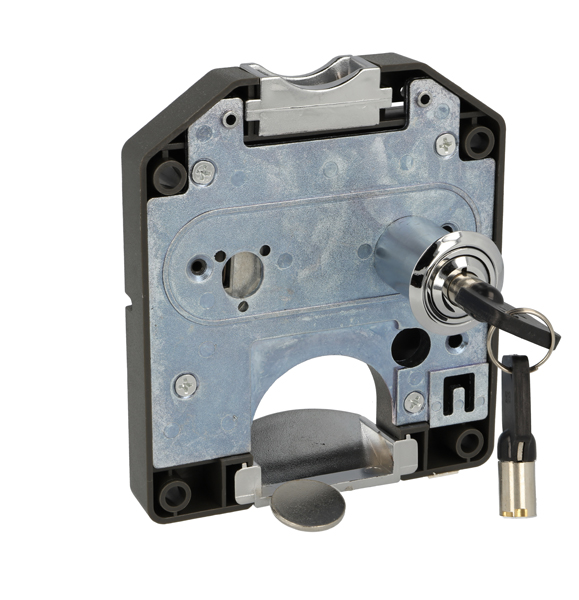 Coin Lock F/2 Zloty, W/IC, CPL, LH, Tubular CK SISO Black, Plastic Body, Coin Entrance & Exit Chrome Pl. Plastic W/SISO Logo, w/Rosette, w/Interchangeable System ONLY