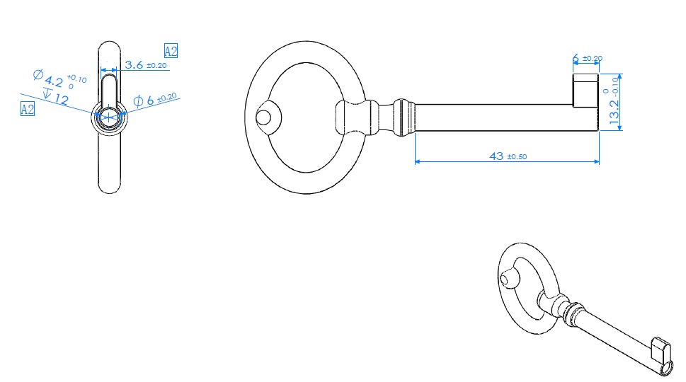 Antique Zamak Key, No. 1026, NPL, Shaft 43mm, W/Euro Bit