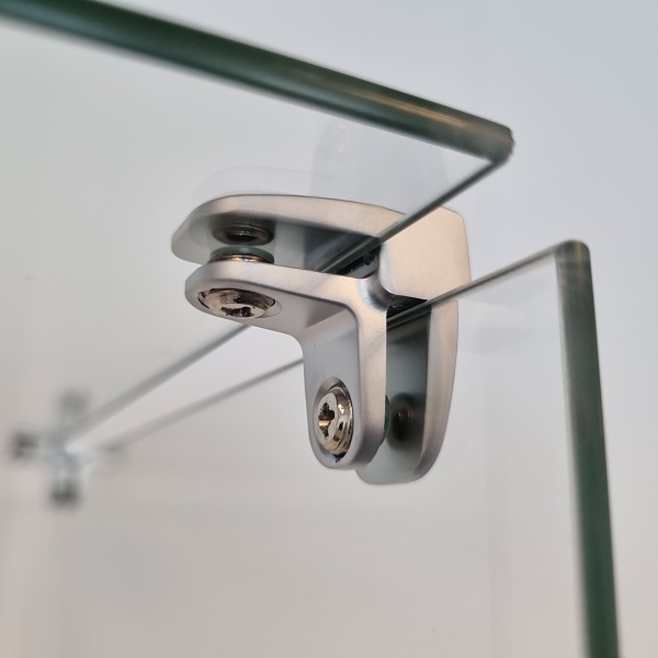 Glass connector "Passion" 2-way,90DG,ALU,W/Metal Screws W/Soft Tip, f/Glass Thickness 4-6mm