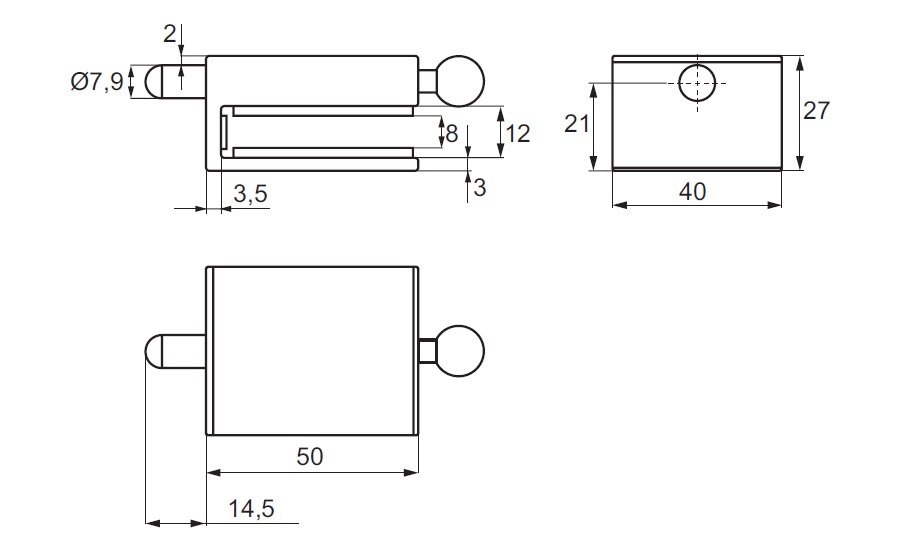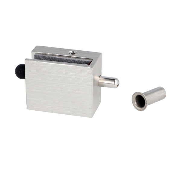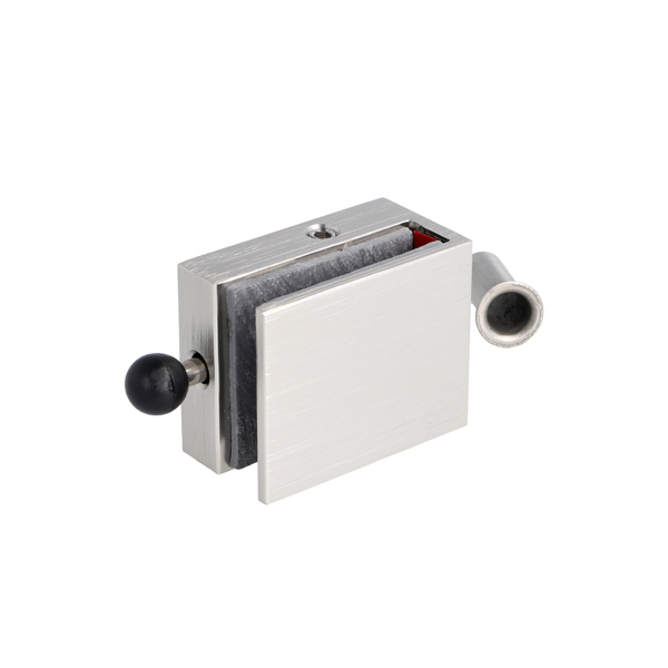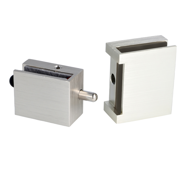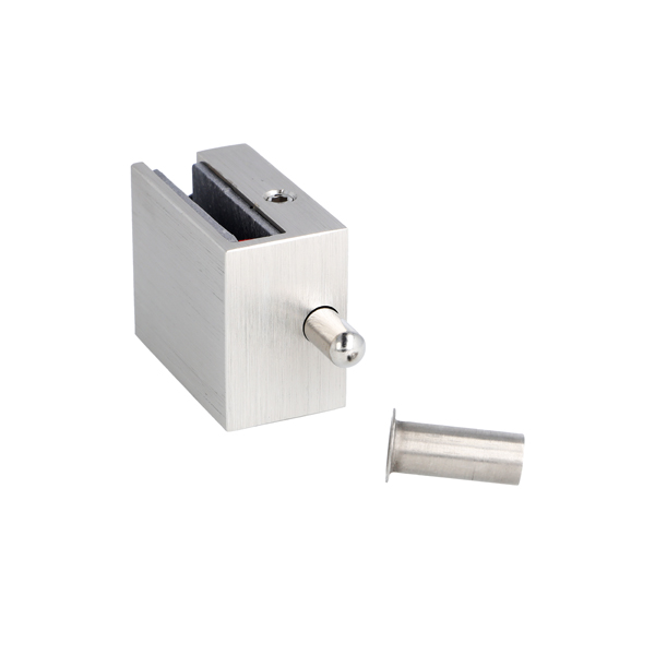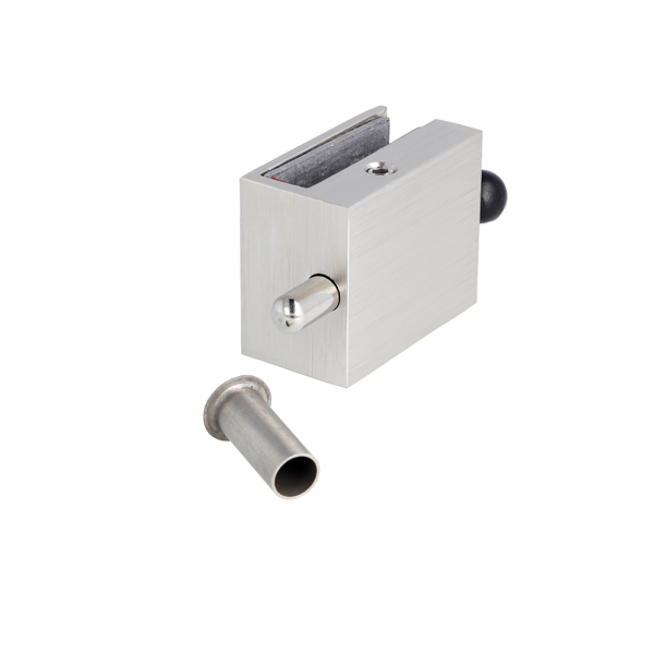 Glass Door Lock "Thor", F/8mm Glass,Brushed Alu, 50x40x27mm, No Drilling, W/Locking Bolt, Incl. Striker Bushing ø10x25mm