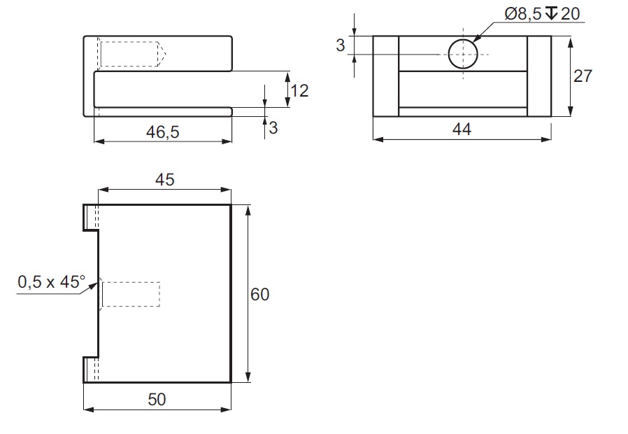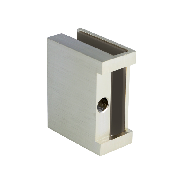 Striker Plate F/Glass Door Lock "Thor", F/8mm Glass/Glass, Brushed Aluminum, 60x50x27 mm, No Drilling