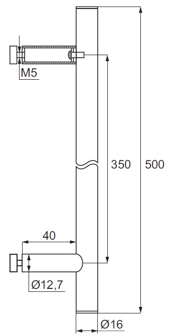 Door Handle "Elbe" SS304 Polished, ø16x500mm, cc 350mm, Single Handle, 8-12mm Glass Thickness, Bore: ø8mm