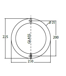Door Handle "Po" SS304 Polished, ø25x225mm. cc 200mm, 8-12mm Glass Thickness, Bore: ø12mm