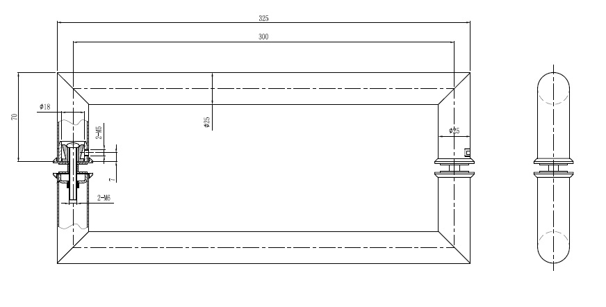 Door Handle "Rhine" SS304 Brushed, ø25x325mm, cc 300mm, 8-12mm Glass Thickness, Bore: ø8mm