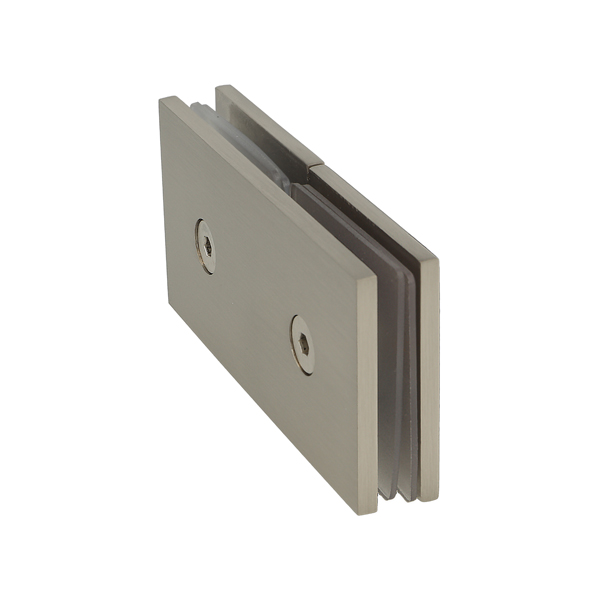 Glass Clamp "Bern", 180DG, SS-Look, Glass/Glass,102,5x51x17m Square Corners, 8-10mm Glass, Glass Mounted By ø12mm Drilling, Brass Material