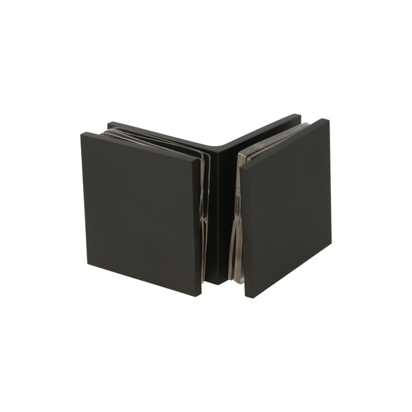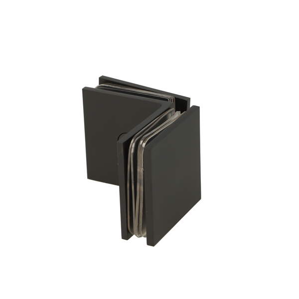 Glass Clamp "Bern", 90DG, Black Finish,Glass/Glass, 51x51x17 mm, Square Corners, 8-10mm Glass, Glass Mounted By ø12mm Drilling, Brass Material