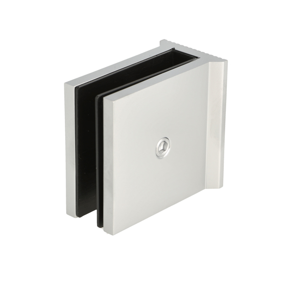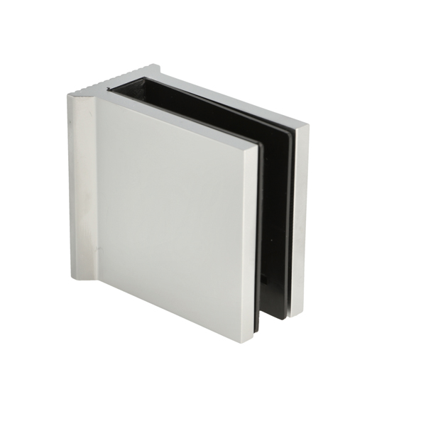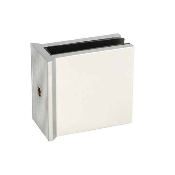 Glass Clamp "Kos", Alu Finish, Floor/Glass, 55x50x30mm, 6-10 mm, Glass Thickness, No Cutting, Brass Material