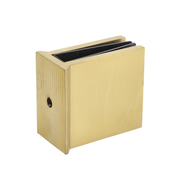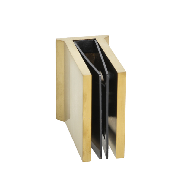 Glass Clamp "Kos", Brushed Brass, Floor/Glass, 55x50x30mm, 6-10mm Glass Thickness, No Cutting, Brass Material