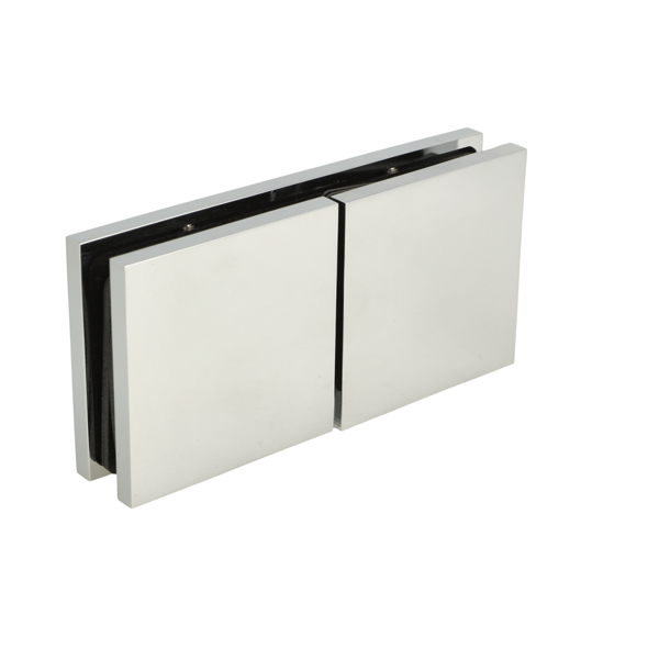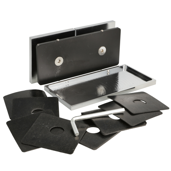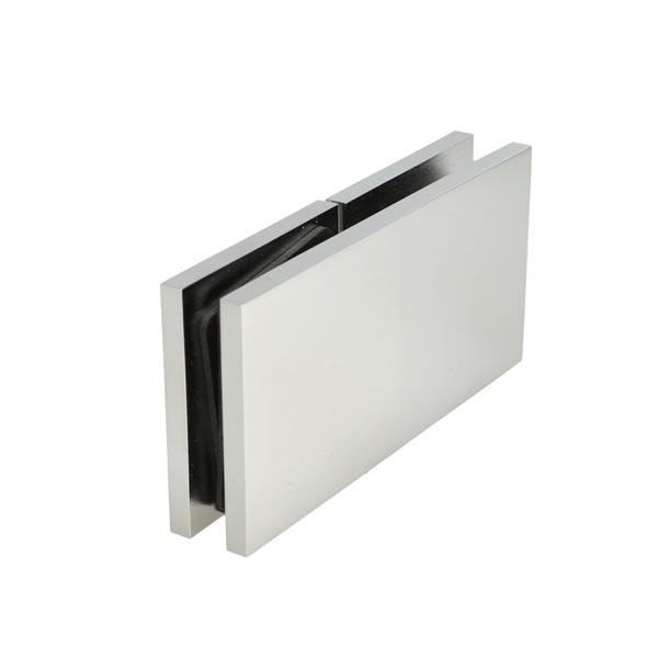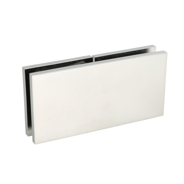 Glass Clamp "Lima", 180DG, CPL, Glass/Glass,122,4x60x20,5mm, 6-10mm Glass, Glass Mounted By ø14mm Drilling, Hidden Screws, Brass, Alu & SS-304 Material